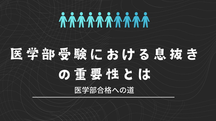 医学部受験は狭き門で、できるだけ多くの時間を勉強に使う必要があります。ただ、休む時間も重要で、しっかり休むからこそ高い勉強効率を維持できるようになります。勉強する、息抜きする、というメリハリをつけましょう。